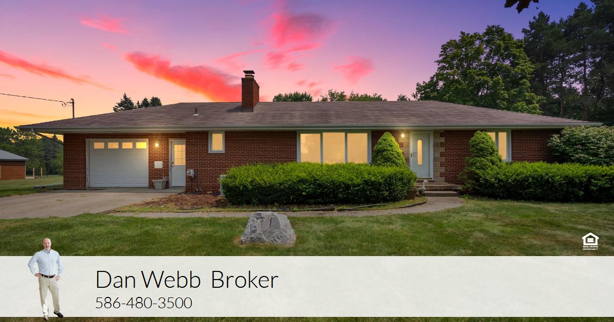 A rare find! Full Brick Ranch on 2.57 acres. This is the largest lot in the subdivision. Plenty of room to roam and build the pole-barn of your dreams. Move in ready, 2 bedroom, 1 full and 1 half bath home with updated kitchen. The large living room with working natural fireplace. Relax in the 3-season sunroom overlooking the large lot. Recent updates include: Newer furnace, AC, Hot Water Tank and Sump Pump. Full house generator included! There is a 1-car attached garage as well as a 1-car detached garage. Davison does allow for additional out-buildings on lots over 2 acres. All appliances stay and the John Deere riding lawn mower and snow blower are negotiable.